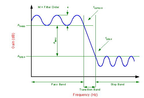 There are four key parameters, that specify an low-pass filter as shown in figure 3.4.1a: fCUT-OFF, fSTOP, AMAX, and M.