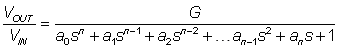 Therefore the transfer function of the Chebyshev filter is similar to the Butterworth filter in that it has all poles and no zeros with a transfer function of: -
