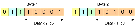 If A = 1, byte 2 which contains data d4…d0 (Lower 5-bits of ADC reading).