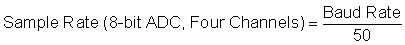 The RS232 communications is the bottleneck as the maximum sampling frequency of PIC16F877 microcontroller ADC is higher than can be transmitted over RS232. Therefore it makes since to calculate the maximum sample rate based on how much data can be transmitted through RS232 at different baud rates.