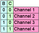 Figure 6.2b. Illustration of storage mode with four channels (chop mode)
