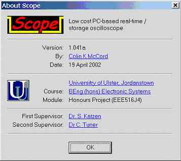 Screen dump of scope.exe (V1.041a, 19/04/2002)