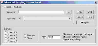 Another view exists (figure 7.0o), but has not been implement. It was expected that the user would enter a file name and press [Rec] to stream real-time data to disk and press [Play] to play back recorded real-time data.