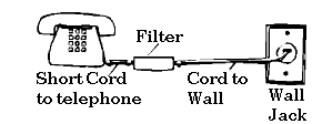 Install this filter at the back of the telephone, on the line cord, and/or at
